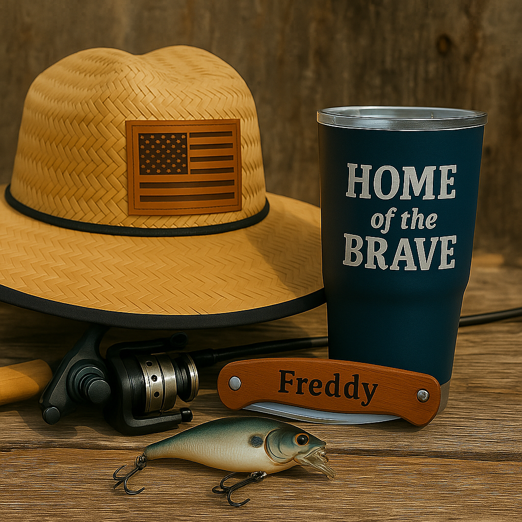 We create premium leather patch hats and personalized gifts that celebrate individuality, craftsmanship, and American grit. Every piece we make — from our 100% genuine leather patches to our laser-engraved products — is made with pride, precision, and purpose.